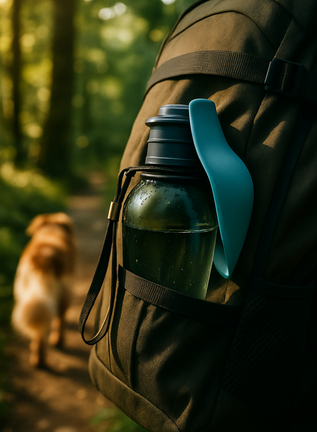 Fini les flaques d'eau sales et les sources d'eau douteuses. Avec notre gourde, offrez à votre fidèle compagnon une eau propre et saine.
